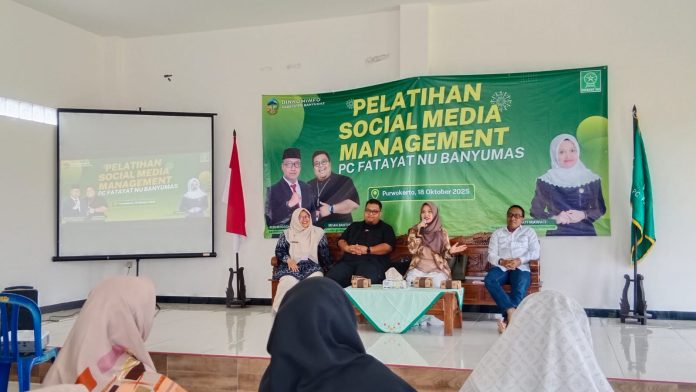 Banyumas, nubanyumas.com — Pimpinan Cabang (PC) Fatayat Nahdlatul Ulama (NU) Banyumas menggelar Pelatihan Social Media Management di Gedung Serbaguna PC Fatayat NU Banyumas, Sabtu (18/10/2025). Kegiatan ini menjadi upaya nyata Fatayat NU dalam menyiapkan kader perempuan muda agar mampu berdakwah dan berdaya melalui media digital.