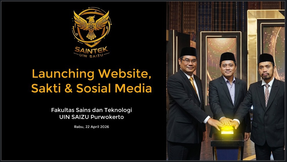 PURBALINGGA, nubanyumas.com – Fakultas Sains dan Teknologi (Saintek) UIN Prof. K.H. Saifuddin Zuhri (UIN Saizu) Purwokerto resmi meluncurkan logo baru, website fakultas, serta aplikasi SAKTI (Sistem Informasi Akademik Saintek Terintegrasi) dalam sebuah acara yang berlangsung khidmat, tertib, dan penuh antusiasme, Rabu (22/4/2026).