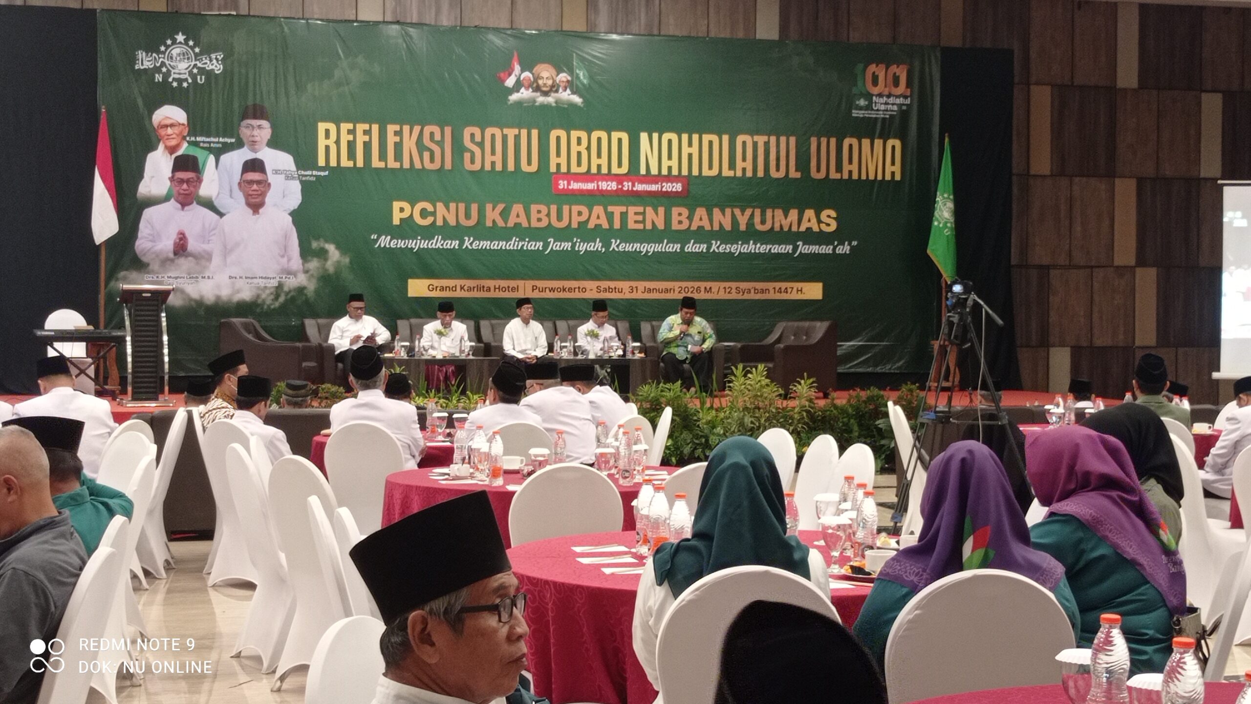 PURWOKERTO, nubanyumas.com – Pengurus Cabang Nahdlatul Ulama (PCNU) Kabupaten Banyumas menggelar Refleksi Satu Abad NU di Hotel Grand Karlita, Purwokerto, Sabtu (31/01/2026). Agenda ini mengusung visi besar “Mewujudkan Kemandirian Jam’iyah, Keunggulan, dan Kesejahteraan Jamaah.”