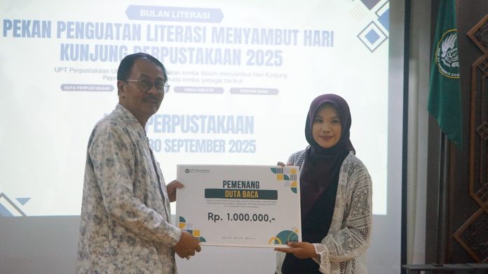 Purwokerto, nubanyumas.com – Unit Pelaksana Teknis (UPT) Perpustakaan UIN Prof. K.H. Saifuddin Zuhri (UIN Saizu) Purwokerto menggelar Pekan Penguatan Literasi Pemustaka 2025 untuk memperingati Bulan Literasi Nasional sekaligus menyambut Hari Kunjung Perpustakaan.