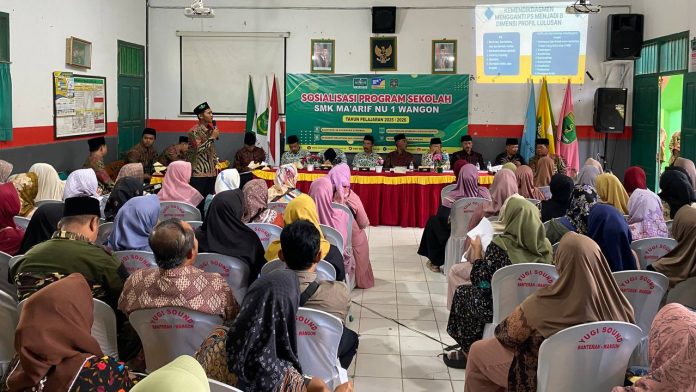 Wangon, nubanyumas.com – SMK Ma’arif NU 1 Wangon menggelar Rapat Sosialisasi Program Sekolah Tahun Pelajaran 2025/2026 pada Sabtu (30/8/2025). Kegiatan ini diikuti oleh wali murid kelas X, XI, dan XII sebagai upaya memperkuat sinergi antara sekolah dan orang tua dalam mendukung keberhasilan pendidikan siswa.
