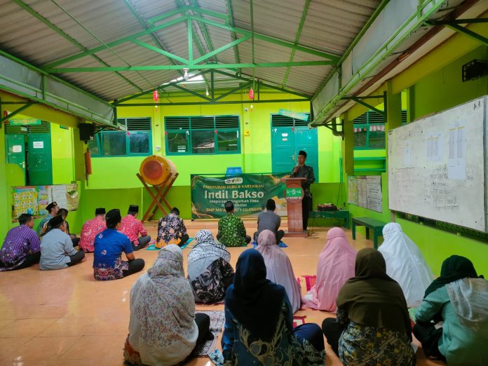 SUASANA pelaksanaan salat Zuhur berjamaah di SMP Ma’arif NU 1 Cilongok pada Rabu (3/12/2025) terasa berbeda. Para guru menyambut hangat kehadiran Ketua Pergunu Kabupaten Banyumas, Dr. Dudiyono, M.Pd., yang datang untuk bersilaturahmi sekaligus mengikuti agenda rutin Indil Bakso (Inspirasi Dengarkan Ilmu Bakda Salat). Kegiatan ini menjadi ruang refleksi harian bagi para guru setelah ibadah berjamaah.